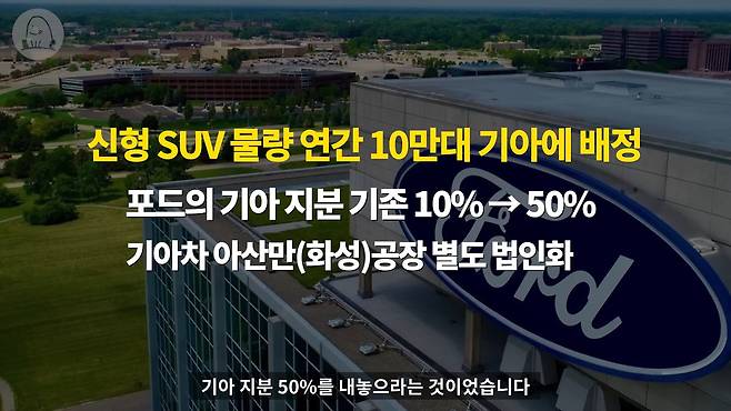 포드가 내민 조건은 연간 생산량의 절반인 10만 대를 기아가 맡는 대신 기아의 지분 50%를 내놓으라는 것이었습니다. 당시 산업 규모를 비춰보면 혹할 만한 조건이었지만 50%의 지분 요구는 경영에 간섭하겠다는 검은 속내가 뻔히 들여다보이는 제안이었죠. 마쯔다도 동일한 방식으로 포드에게 지분을 잠식당한 것을 알고 있던 당시 기아의 김선홍 회장은 이를 단칼에 거절했고 포드가 손을 떼면서 두 번째 월드카 계획은 무산됩니다.