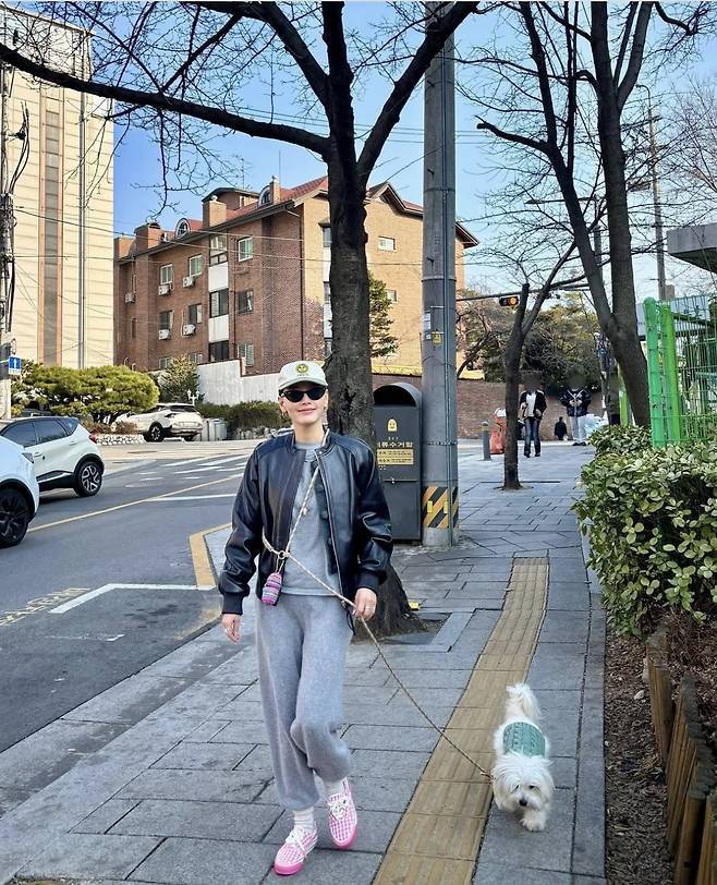 “결혼한 줄도 몰랐는데?” 36세 유부녀 여배우, 꾸안꾸 레더 산책룩