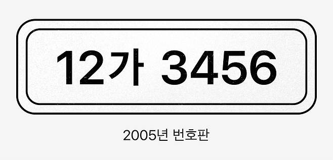현재까지 이어지고 있는 흰색 번호판은 2005년에 처음 등장했어요. 바로 흰색 바탕에 검정 글씨가 기재된 모습이죠. 문자의 나열 방식이 기존 2열이 아닌 유럽 등지에서 만나 볼 수 있는 1열로 바뀌면서 번호판 형태 또한 길쭉하게 변경됐어요. 다만 도입 초기에는 신규 형태의 흰색 번호판이 기존에 출시된 자동차에 부착할 경우 호환성 문제로 제대로 부착할 없다는 문제로 인해 기존 초록색 번호판의 크기를 유지한 채 1열로 구성된 신규 번호판을 발급받을 수 있었어요.