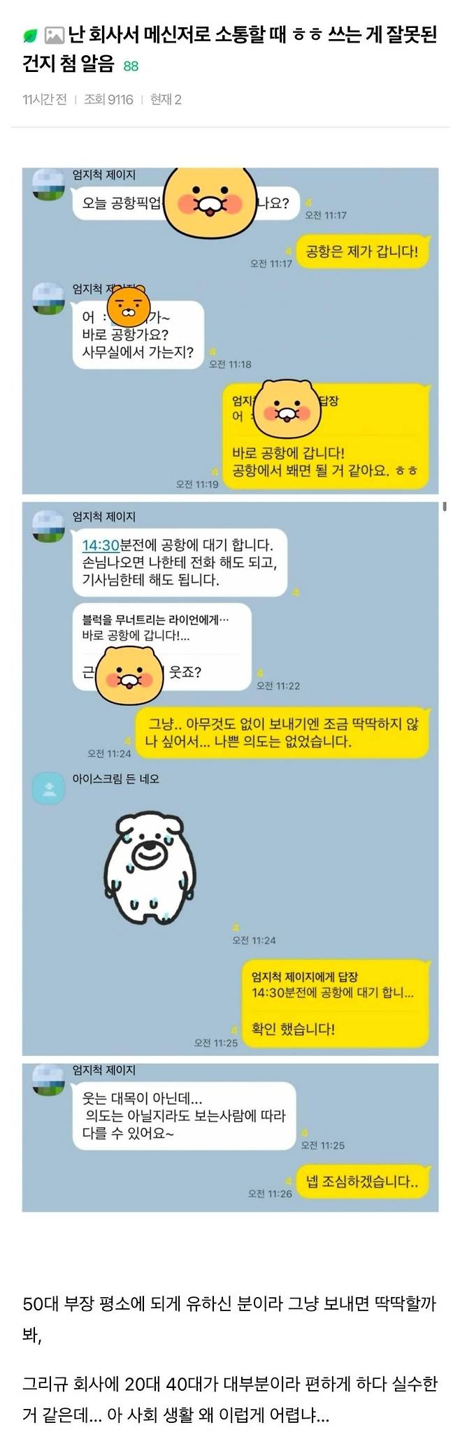 사내 메신저 카톡에서 'ㅎㅎ' 쓰면 생기는 일