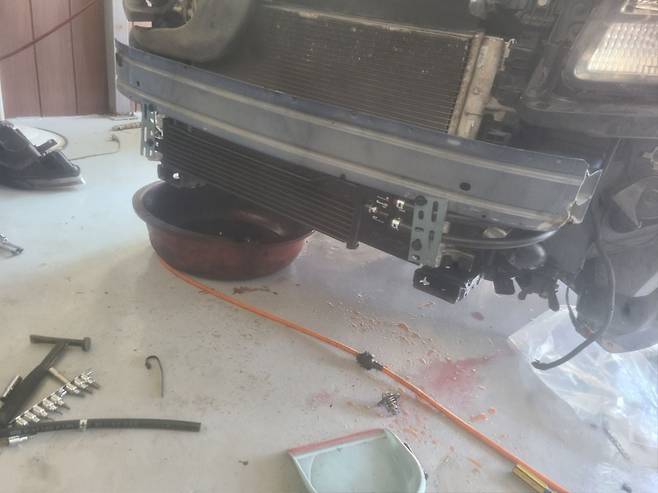 미션쿨러 브라켓을 안사서 앵글 잘라서 고정시키고