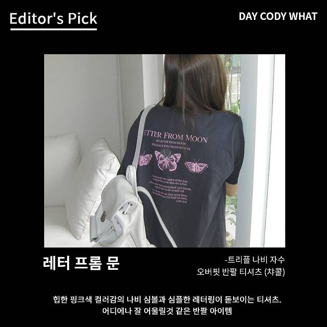 2. 레터 프롬 문트리플 나비 자수 오버핏 반팔 티셔츠(차콜)