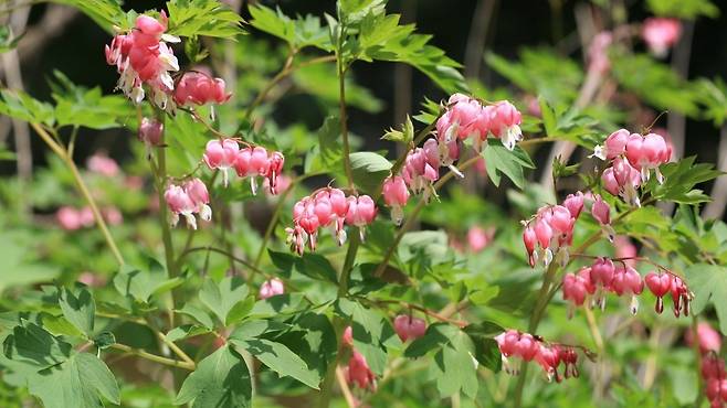 우리나라 산지 곳곳에서 자생하는 '금낭화'