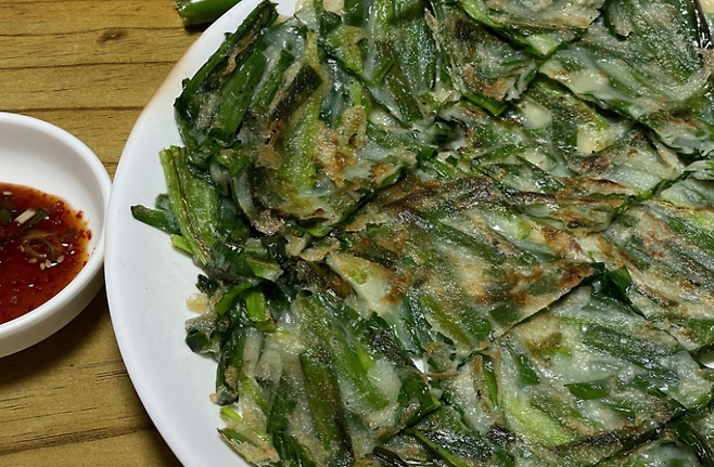 이곳은 콩국수만으로 끝나지 않는다. 이름에 ‘손칼국수’가 들어간 만큼, 국물 칼국수의 깊이도 남다르다. 진한 멸치 국물에 면을 푸욱 끓여낸 칼국수, 그리고 함께 나오는 부추전과 청양고추는 이 집만의 시그니처 조합이다. 부추전 한 조각에 고추 하나 얹어 먹으면, 그 짭짤한 자극이 입맛을 다시 깨운다.