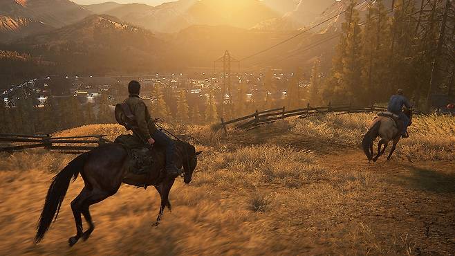 그렇더라도 극초반 조엘과 토미가 자신들의 새로운 정착지인 잭슨으로 이동하는 컷신에서부터 입이 벌어지는 체험을 할 수 있었습니다. 게임 속 아웃브레이크 발발 시점에서 25년이 흐른 2038년의 미국 곳곳 –모든 문명이 스러지고 대신 차지한 웅장한 자연 풍광- 이 현실적인 광원 효과와 시간 및 기후 변화에 따라 때로는 아름답게, 때로는 혹독하게 몰아칩니다.