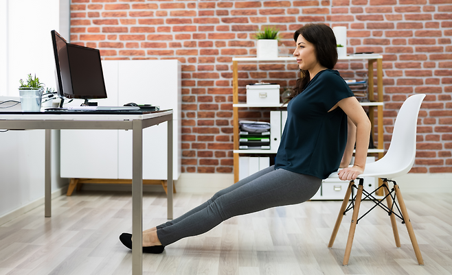 딥스는 삼두근과 가슴 근육을 강화하는 데 탁월하다. 평행봉이나 튼튼한 의자를 활용해 양손으로 몸을 지탱한 뒤, 팔꿈치를 굽혀 몸을 내렸다가 다시 밀어 올린다. 어깨 관절에 무리가 가지 않도록 천천히 동작을 반복하는 것이 좋다.