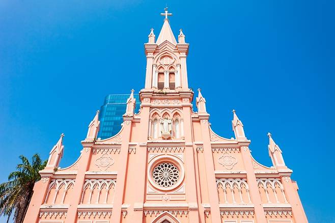 핑크빛으로 물든 다낭 대성당. 다낭 시내에 위치한 포토 스팟으로 여행객의 발길이 끊이지 않는다. 카메라에 담기는 색감마저 아름다우니 인생 샷을 꼭 건져볼 것.