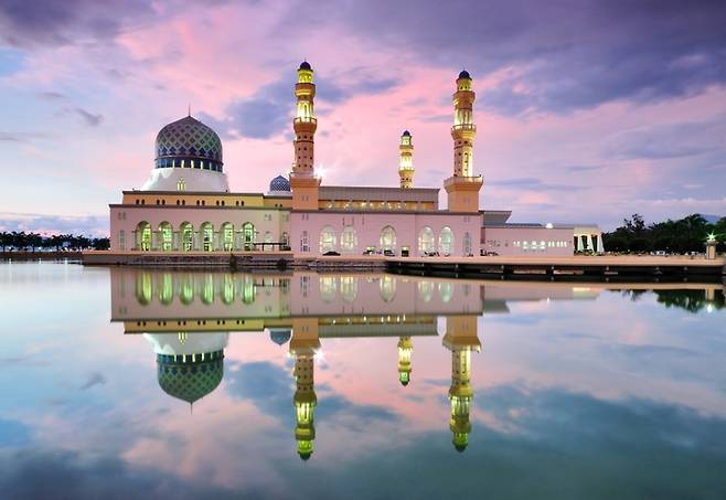 코타키나발루를 대표하는 건축물 중 하나인 리카스 모스크. 파란색 돔으로 인해 ‘블루 모스크’라고 불린다. 멀리서 사원을 바라보면 마치 물 위에 떠 있는 것처럼 신비로운 모습이다.