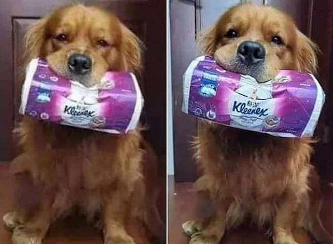 이와 별개로 화장지를 가져달라는 집사의 부탁에 똑부러지도록 화장지를 찾아내 가져다주는 강아지라는 점에서 할 말을 잃게 합니다.