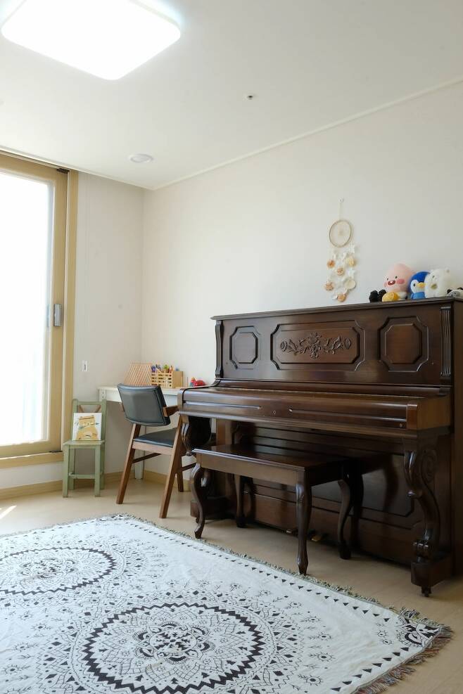 아들방은 피아노도 치고 책도 읽고 컴퓨터도 하고 가족 모두가 사용하는 취미실 같은 공간으로 사용 중이예요. 10살쯤 되면 책상도 사주고 침대도 옮겨서 자기만의 공간을 만들어 주는 게 좋은 거 같아요.
