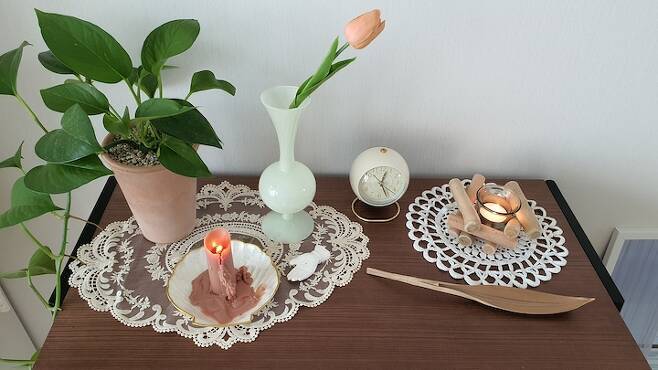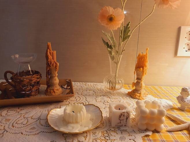 요즘은 양초도 디자인이 다양하게 나와서 이렇게 올려두기만 해도 멋스럽더라고요.