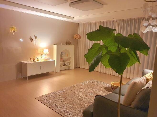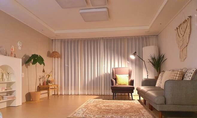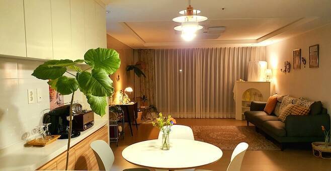 밤의 무드를 좋아해서 밤에 찍은 사진들이 많아요. 인테리어의 완성은 조명이라고 하죠? 조명을 켜 둔 밤의 무드가 참 좋아요. 소파에 앉아 음악도 듣고 이런저런 생각을 하는 시간이 저에게는 참 소중하답니다.
