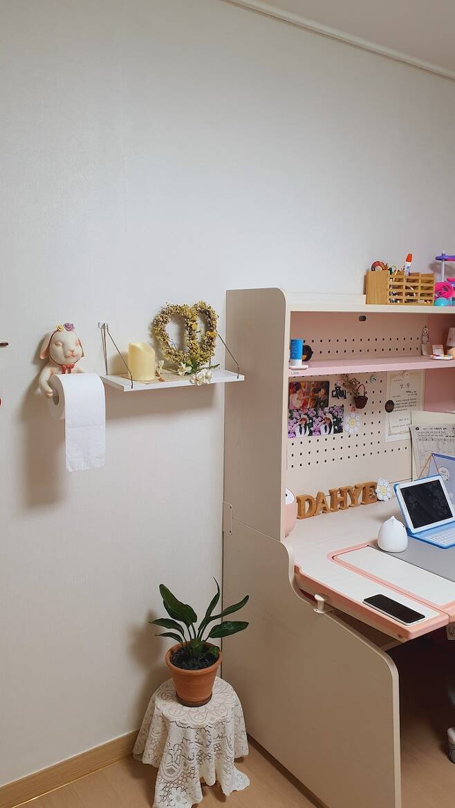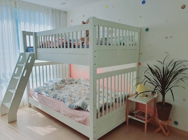 2층 침대로 동생과 같이 자다가 4학년쯤 되니 혼자만의 방이 갖고 싶다고 하더라고요. 그래서 다시 분리해서 지금은 1층 침대로 사용 중이예요. 어른들도 그렇듯 누구나 혼자만의 시간은 필요하니까요. 혼자 쓰는 방이 되고 나서는 더 열심히 방을 정리하고 꾸미더라고요.