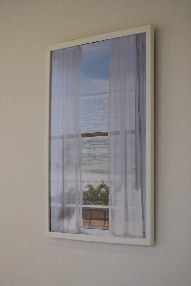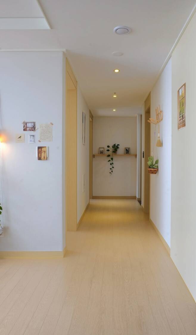 현관을 지나 복도에 배전함이 보이는데 그 부분을 액자를 걸어서 가려주었어요. 계절별로 안에 포스터를 바꿔주면 또 다른 느낌이 든답니다. 이 포스터를 보면 늘 '여행 가고 싶다' 라는 생각이 들어요. 편안하게 여행 다닐 그날을 꿈꾸며 포스터 하나에도 마음을 담아 보았어요.