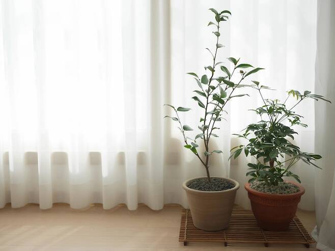 왼쪽은 서향 동백, 오른쪽은 홍콩야자예요. 서향 동백은 동백 중에서도 더 향기로운 꽃 향이 난답니다. 핑크색 꽃이 피는데 아주 탐스럽고 아름다워요. 두 아이들 모두 바람이 잘 통하고 해가 잘 드는 곳에 놓아두면 물을 자주 주지 않아도 잘 자란답니다.
