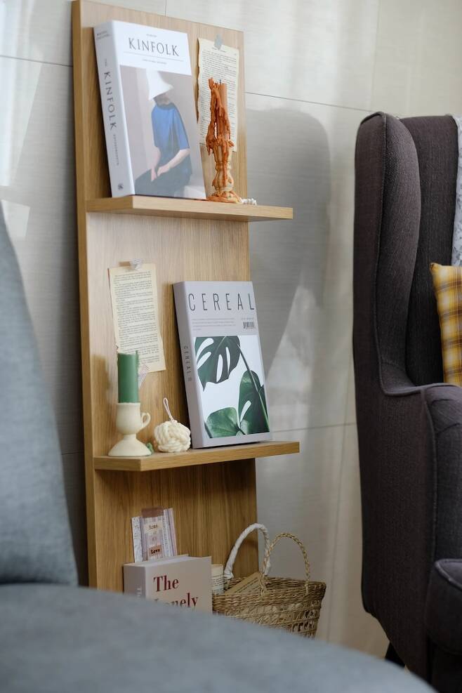 똑같은 가구라도 어디에 두느냐 빛을 어느 정도 받느냐에 따라 색상도 달라지더라고요. 가끔은 저 혼자만 알고 가족들이 잘 눈치채지 못하기도 하지만, 앞으로도 열심히 할 예정이에요. (걸레받이가 있는 벽 쪽은 가구의 수평이 안 맞을 수 있는데 그럴 경우엔 바닥에 동전을 넣어서 높이를 맞추면 안정적으로 사용할 수 있어요.)