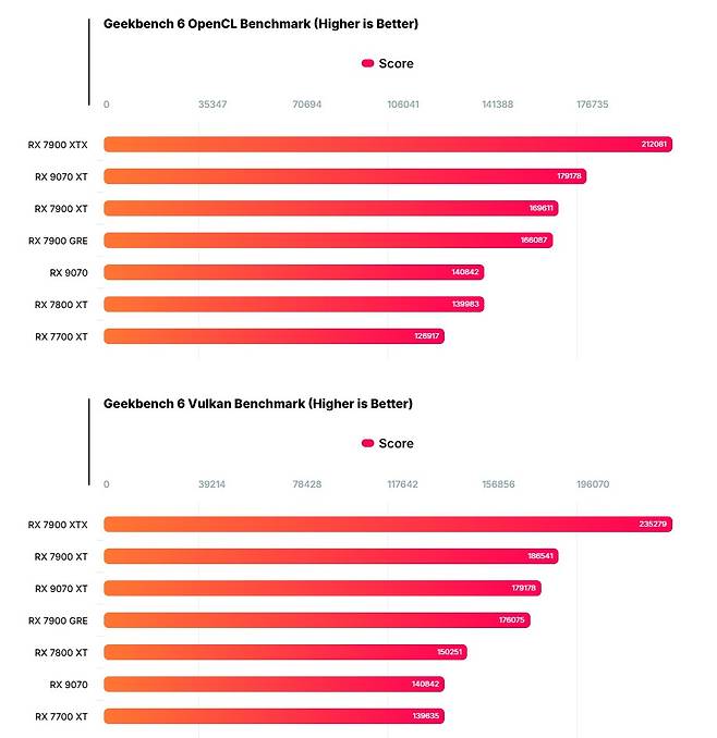 라데온 RX 9070 XT 긱벤치 테스트 자료 유출