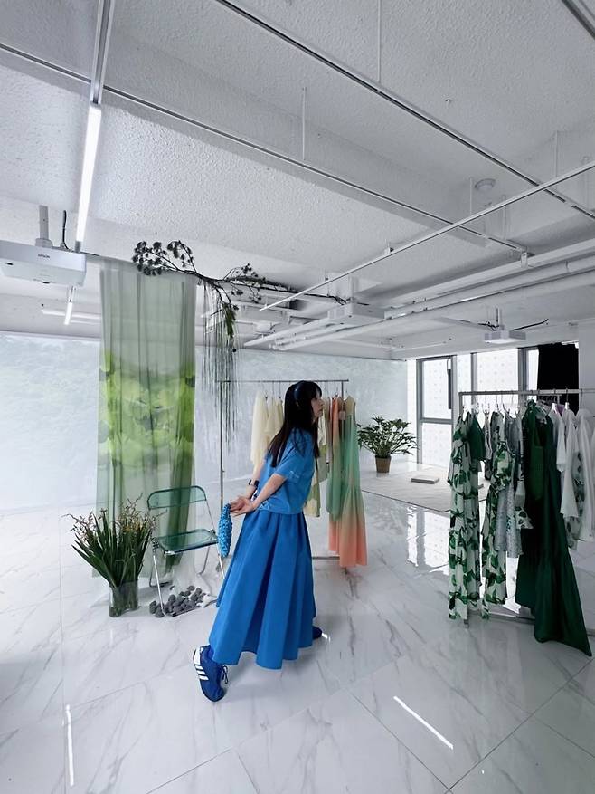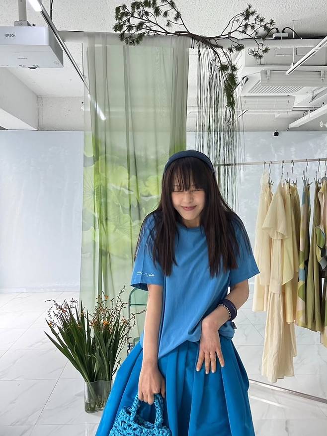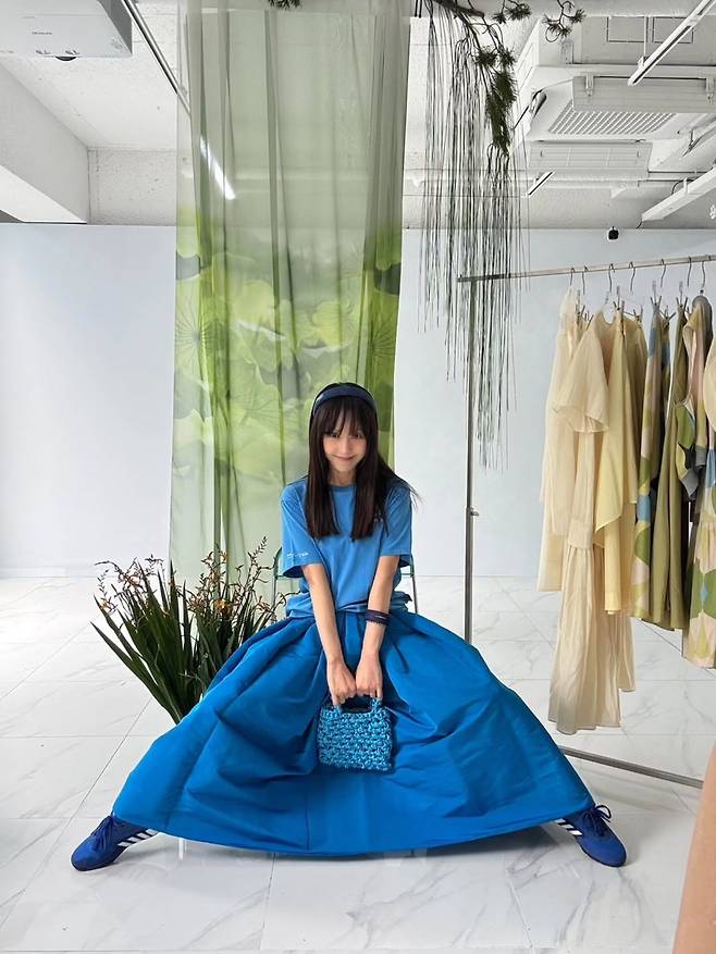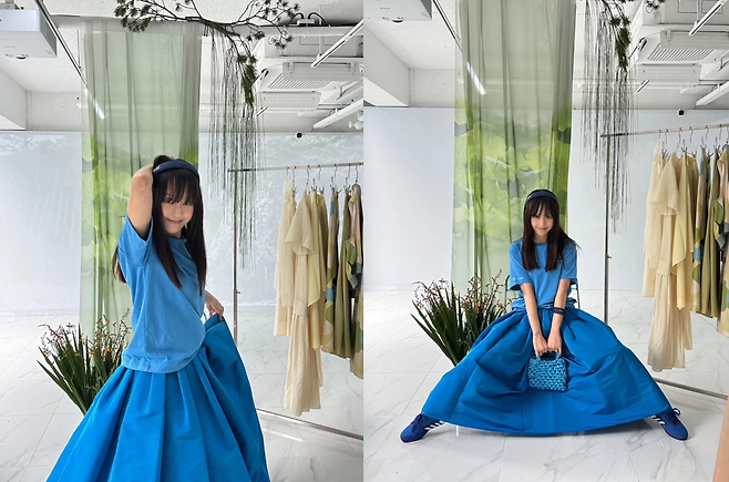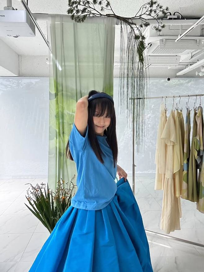 앞머리를 단정하게 내리고, 블루 톤의 볼륨 스커트와 헤어밴드를 맞춰 쓴 그는 20대 못지않은 싱그러운 감성으로 또 한 번 ‘워너비 아이콘’임을 증명했다.