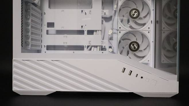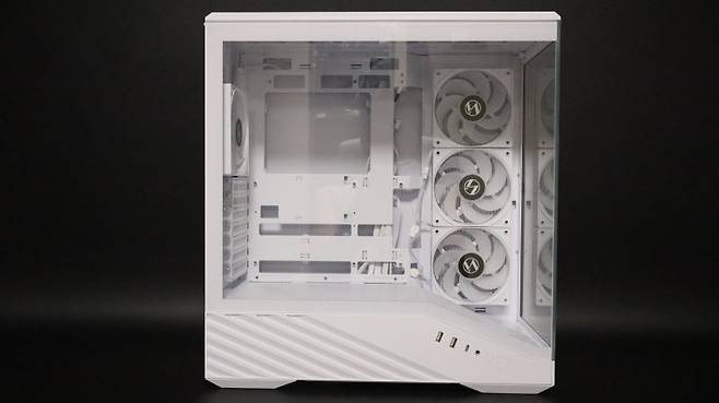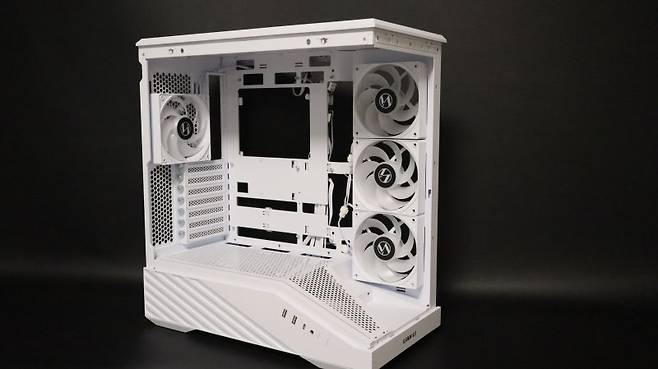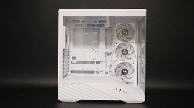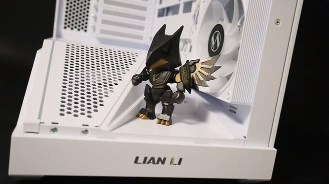 특히 측면 흡기 팬 쪽의 경사 커버는 분리가 가능하고 이를 분리해 내면 적당한 크기의 피규어를 배치해 내부를 개성 가득 담아 꾸미는데 활용할 수 있습니다.