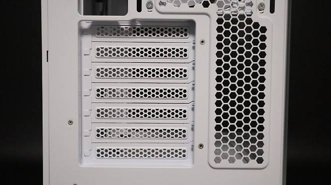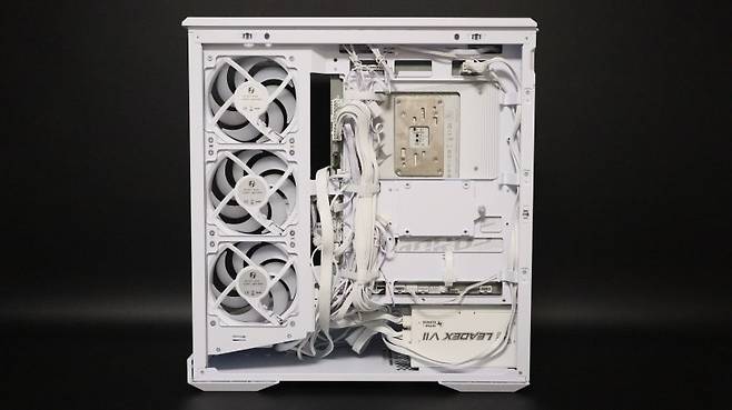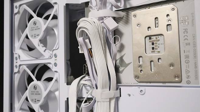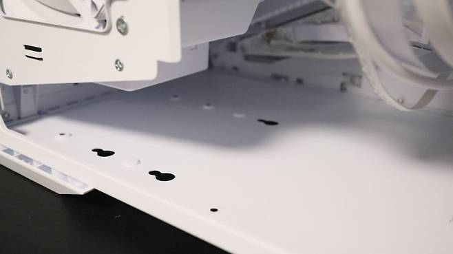 다만, 조립 후 아쉬운 부분을 꼽아보자면 우선 케이블 그로멧이 없어서 후면 커넥터 타입의 메인보드를 사용했음에도 그 깔끔함을 최대한 살려내지 못하고 후면의 케이블들이 노출될 수 있다는 점을 들 수 있겠습니다.