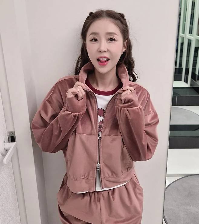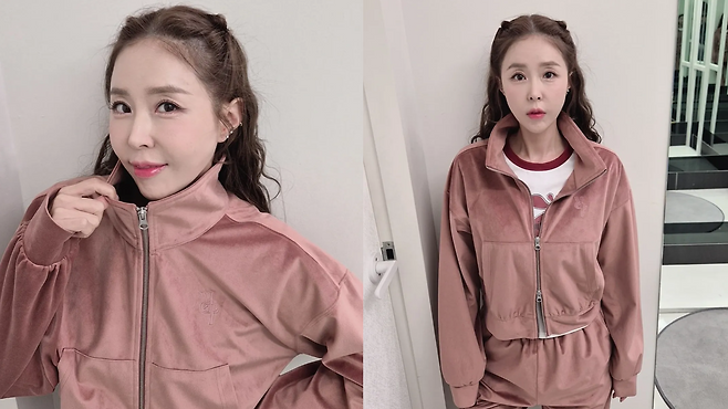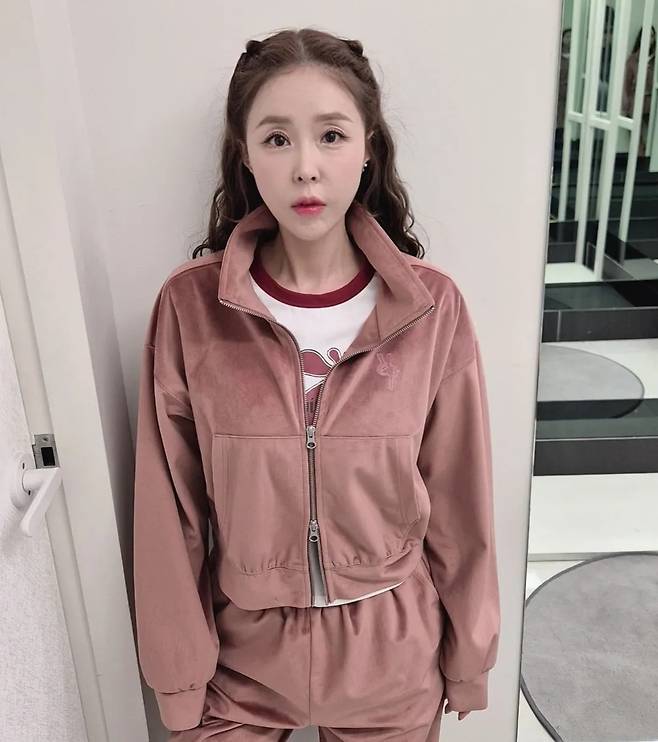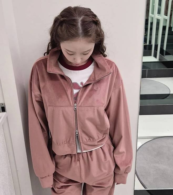 그녀가 선택한 의상은 2000년대 하이틴 스타를 연상시키는 사랑스러운 핑크 벨벳 트레이닝 셋업이었습니다.