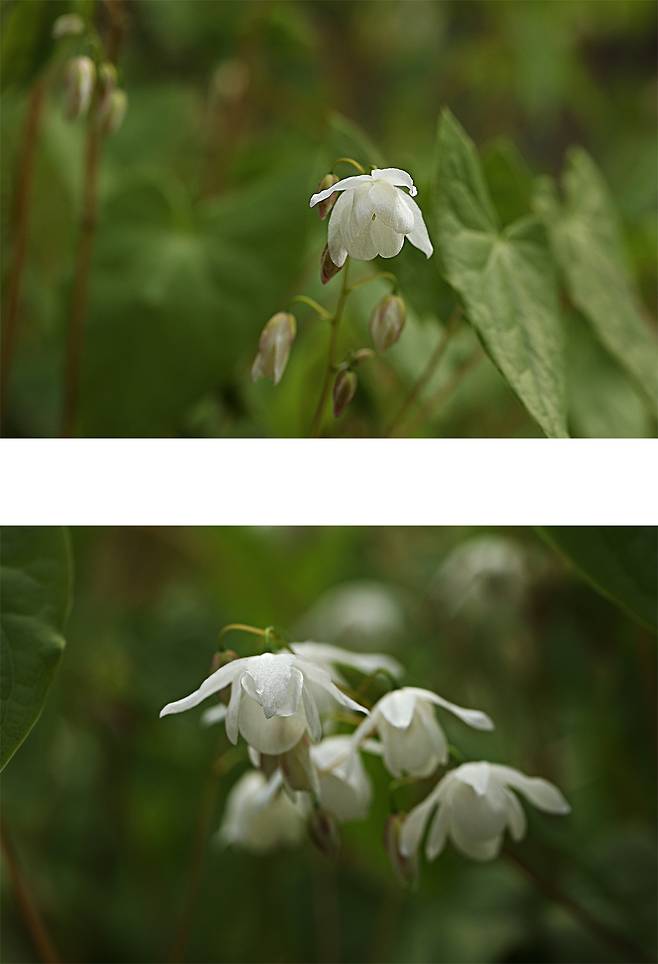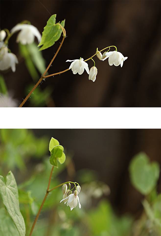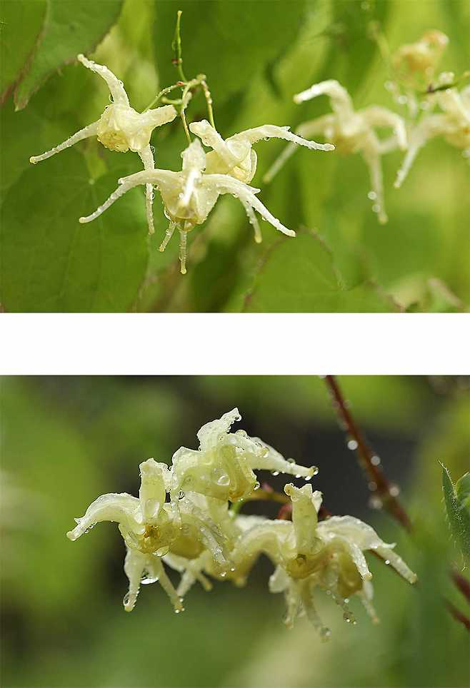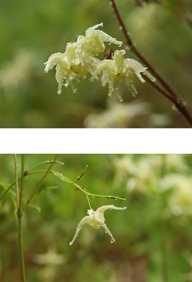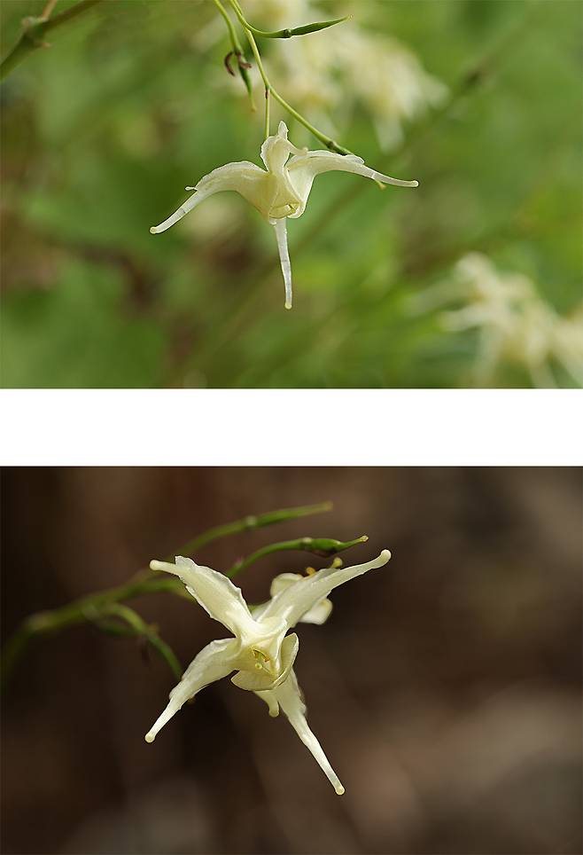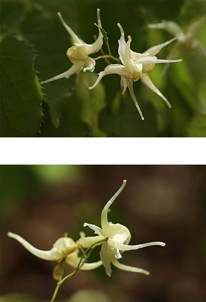 우리나라의 토종 삼지구엽초는 꽃이 크고 미색이다.