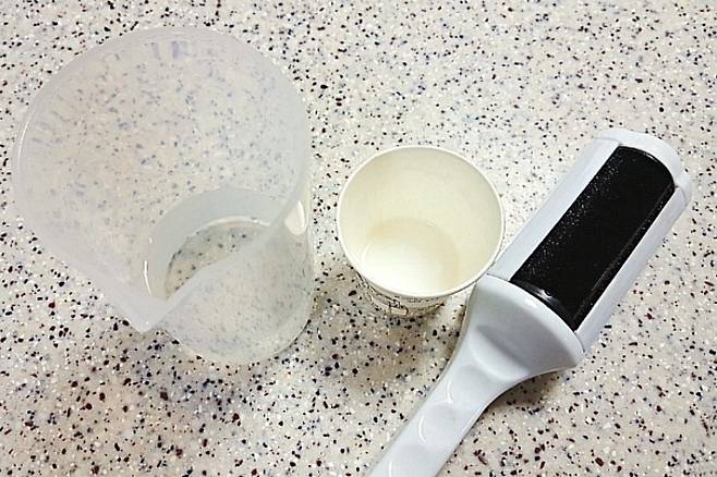 준비물은 물 200ml, 섬유유연제 2T, 옷솔이 필요합니다.