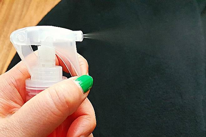 방법도 간단해요. 일단 분무기에 물과 섬유유연제를 섞어주시고요. 코트에 흩날리듯 가볍게 뿌려 줍니다.