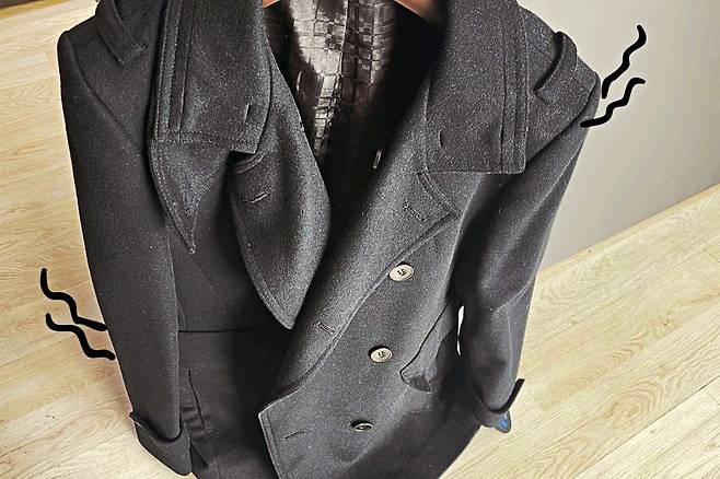 일단 냄새나는 코트 위에 신문지를 덮어주세요.
