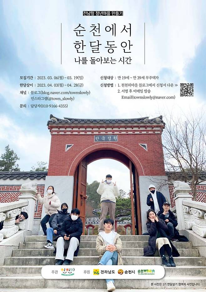 [전남]에서는 순천, 영광, 곡성, 완도 등 5개 청년마을을 선정해 청년이 지역자원을 활용해 지역문제를 해결하고 지역에 활력을 불어넣는 활동을 진행하고 있다. 타지역에 사는 만 19세~만 39세 무주택자 청년 가운데 ‘쉼’이 필요하고 ‘나’에 대한 시간이 필요한 청년, 창업 및 취업에 목표가 있는 청년 등을 모집해 마을을 꾸린다. 참가자에게는 체험비 전액을 진행하고 식사와 한 달 숙소를 제공한다.