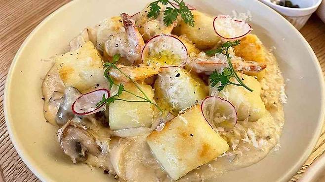▲메뉴: 매콤봉골레파스타 16,900원, 대파크림옥수수뇨끼 17,900원, 브리비트스테이크 34,900원
