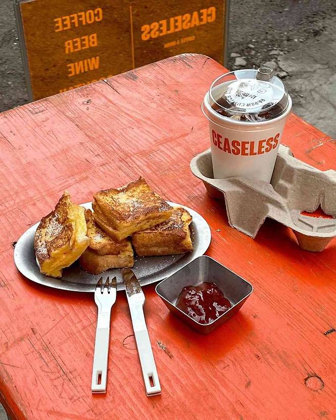 '시슬러스'는 여러 커피, 칵테일, 와인, 맥주 등을 시간대에 구애받지 않고 즐길 수 있는 곳이다. 낮에도 주류 주문이 가능하고 낮과 밤 상관 없이 커피와 술을 마실 수 있는 곳. 일반적인 카페와는 달리, 보물찾기 하듯 안쪽에 숨겨져 있어 오히려 힙한 감성을 더한다.