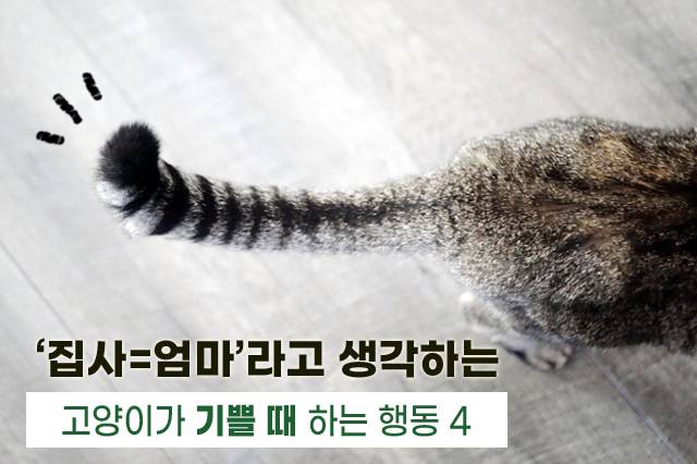 고양이가 세운 꼬리를 살짝 구부리며 다가온다면 “안녕하세요”라는 인사의 표현입니다. 수직으로 세울 때는 돌봐 달라는 응석의 마음이, 이 상태에서 끝을 살짝 구부려 ‘물음표’를 만들 때는 친애의 마음이 깔린 인사의 의미가 담겨 있습니다.