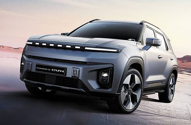 쌍용차는 프로젝트명 ‘U100’으로 개발해 온 토레스 전기차 이름을 ‘토레스 EVX’<사진>로 확정하고 내·외관 디자인을 16일 공개했다. 코란도 이모션에 이은 쌍용차의 두 번째 전기차다.