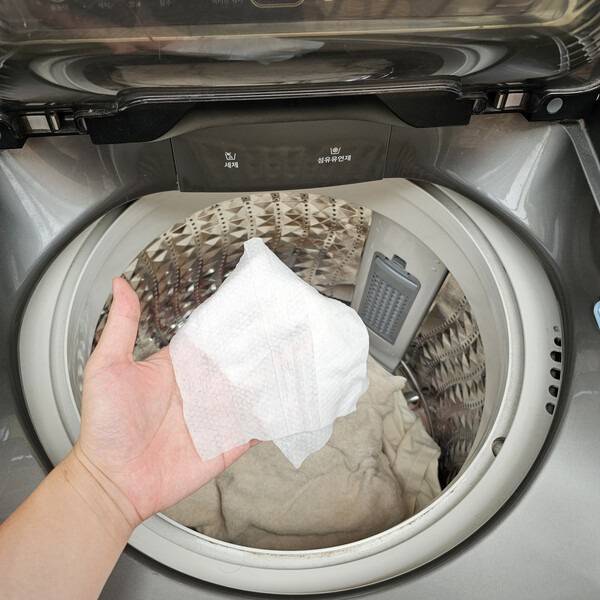 물티슈 하나만 넣어도 세탁기 내부의 먼지 찝찝함이 눈에 띄게 줄어듭니다.