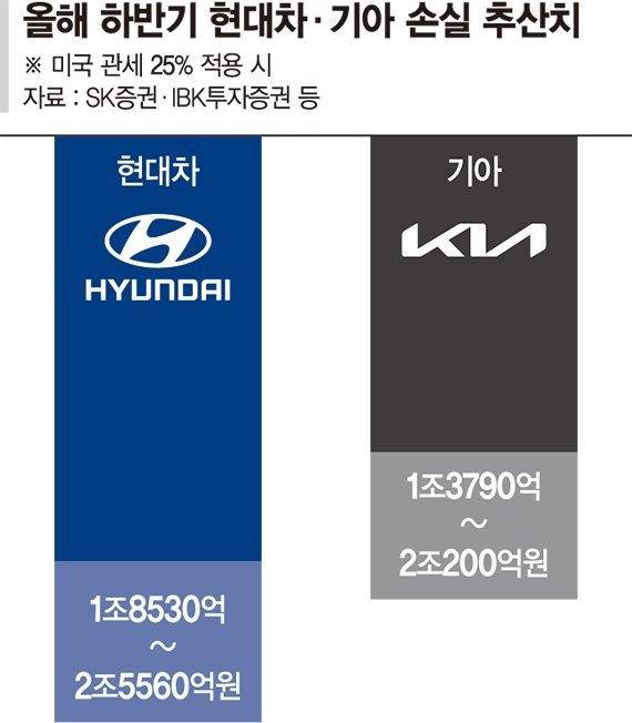 IBK투자증권은 “현 수준 관세가 지속되면 현대차·기아가 매달 7000억원가량의 관세 부담을 질 것”이라며 “가격 경쟁력을 갖추던 현대차·기아가 다양한 가격 전략을 구사하는 데 불리해질 수밖에 없다”고 분석했다.