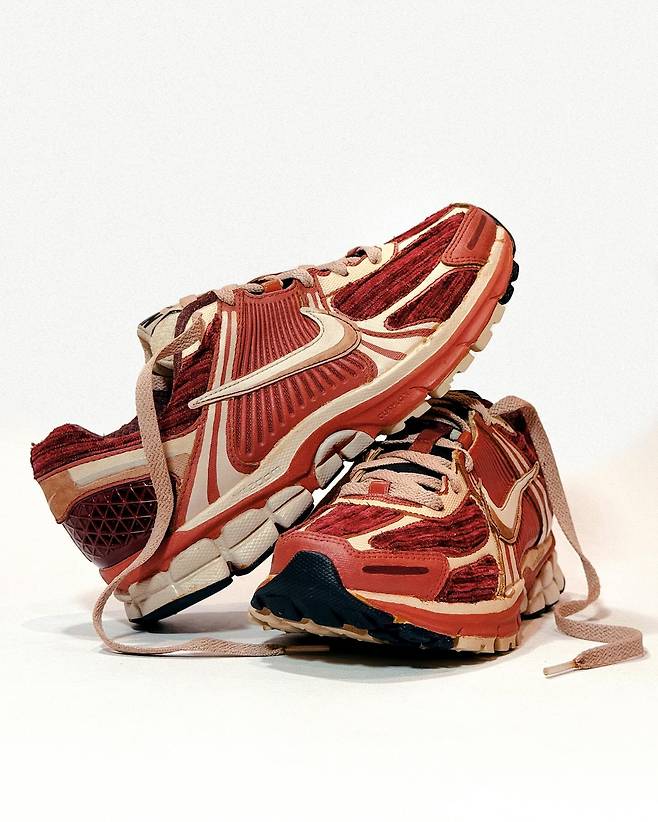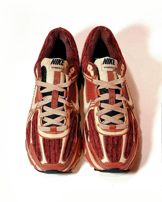 이번 ‘진격의 거인’ 스니커즈는 나이키의 보메로 모델을 기반으로 LA 기반의 커스텀 아티스트 라이언(@iwearsnkrs)와 협업해 제작했다. 피부가 벗겨진 초대형 거인의 근육 조직과 힘줄을 어퍼에 사실적으로 구현한 묘사와 치아를 연상시키는 아웃솔이 디자인의 특징이다. 근섬유의 러프한 형태를 한올한올 살린 고어한 디테일도 눈여겨볼 만하다. 염색과 페인팅, 스티치 작업은 모두 수작업으로 진행해 주문 시 제작 기간은 약 3~5개월로 예상된다. 제품은 사전 예약을 통해 구매 가능하며, 더 자세한 사항은 앤드류 티우의 인스타그램을 참고해도 좋을 것.