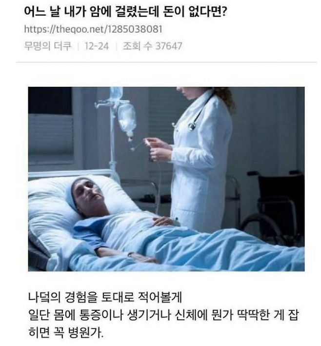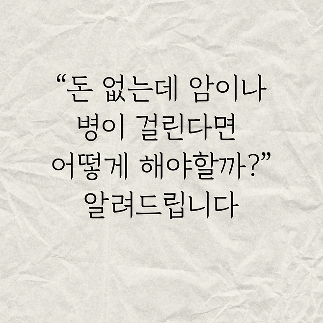 '돈 없는데 암에 걸린다면 어떻게 해야할까' 꿀팁