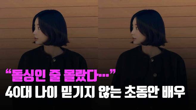 엄지윤은 흰색 바탕에 그레이 계열의 스트라이프가 들어간 오버핏 셔츠를 선택했다. 셔츠의 단추는 일부만 채워 자연스럽게 연출했고 소매를 두껍게 한 번 접어 올려 자유로운 분위기를 강조했다.