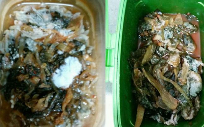 하얀 이물질이 있는 반찬통에서 남은 반찬을 꺼내 먹는 행동은 위험합니다. 세균이나 곰팡이 포자가 음식 전체에 퍼졌을 가능성이 높고, 육안으로 보이지 않는 상태에서도 이미 유해균이 증식했을 수 있습니다.