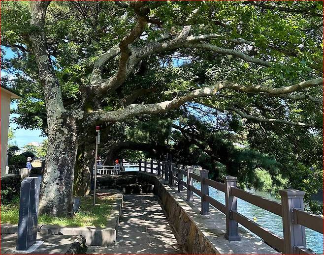 물놀이 후에는 월대천을 따라 조성된 산책로를 걸어보세요. 나무그늘이 짙게 드리워진 길은 자연 속에서 힐링하기 딱 좋습니다. 산책로는 연대포구까지 이어져 바다를 바라보며 걷기에 참 좋은 코스입니다. 특히 월대천 주변에는 250년 된 보호수와 500년 된 팽나무가 함께 있어, 조용히 나무 아래에서 여름의 쉼표를 누릴 수 있답니다.
