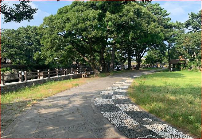 그늘진 산책로와 보호수