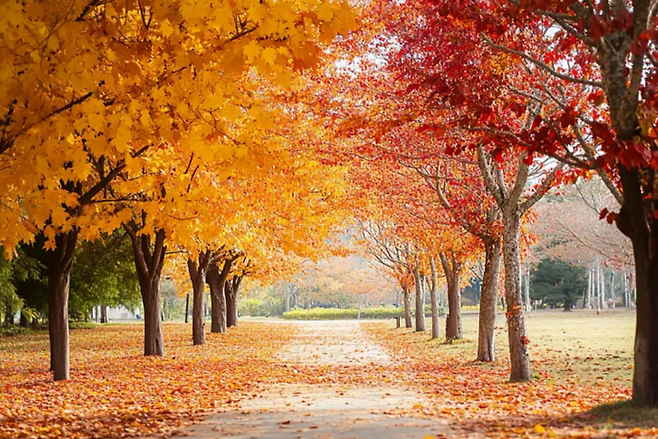 특히 수종별로 보면 참나무류는 연평균 0.52일, 은행나무는 0.50일, 단풍나무류는 0.43일씩 매년 뒤로 밀리고 있다. 이는 단풍 절정이 매년 약 반나절씩 늦어지는 속도로, 단순한 우연이 아니라 기후 온난화의 실질적인 결과다. 우리가 ‘조금 늦게 물든다’고 느끼는 그 하루가 사실은 지구의 이상 신호로 읽힌다.