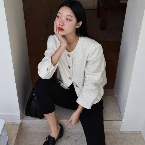 오늘은 봄 코디 출근룩 고민 끗-! 😉 여성 라운드넥 브이넥 가디건 트위드 자켓 추천 어땠어? 다음 패션 꿀팁🍯도 기대하라구! 🥰 안녕! 👋