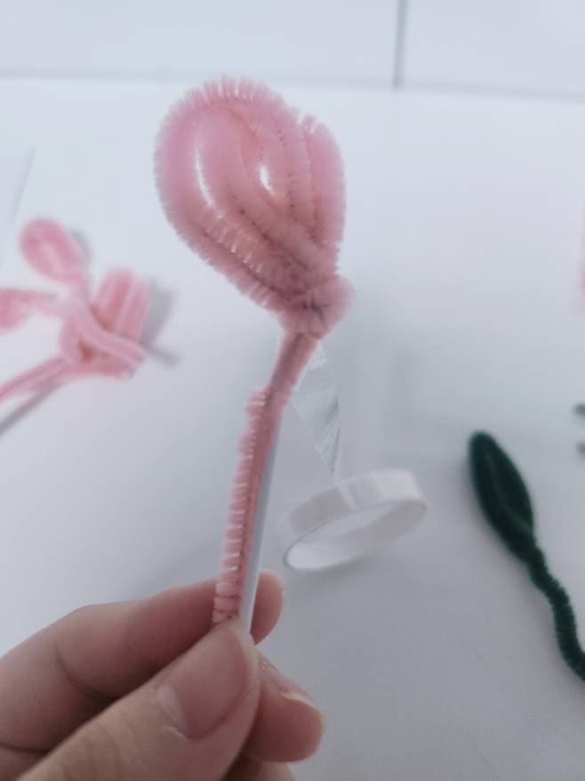 이제 줄기 부분은 초록색 모루로 돌돌 감아주시면 된답니다!