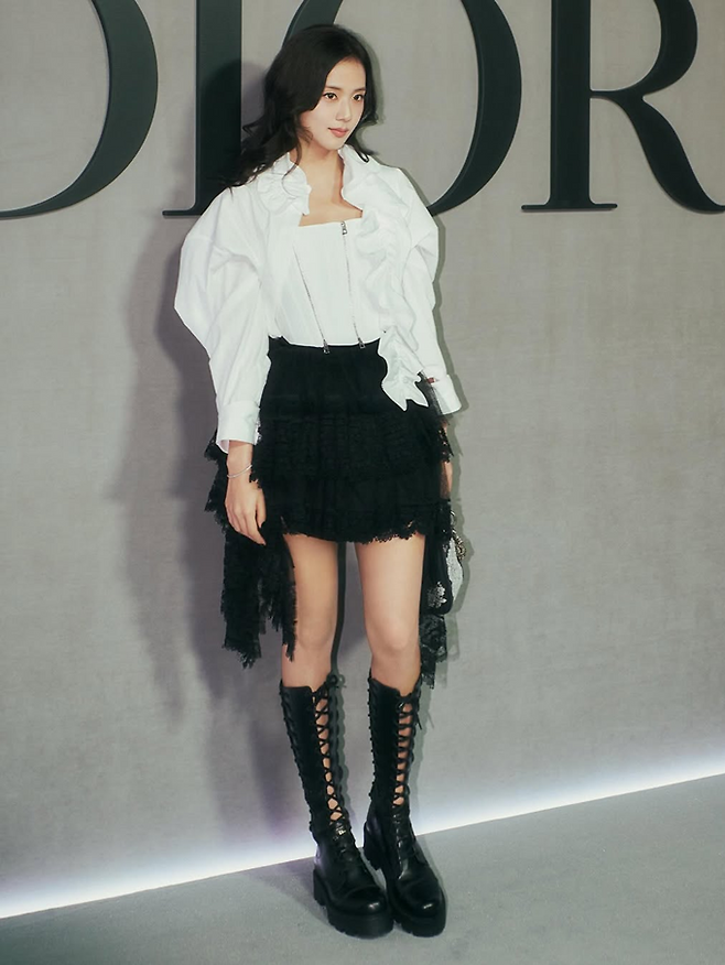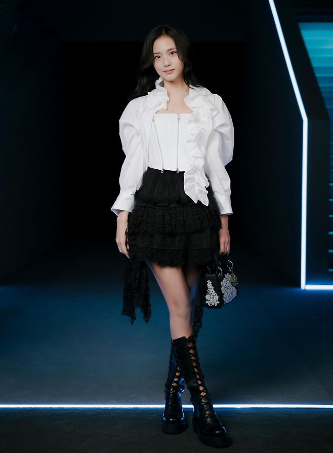 지난 2021년부터 프랑스 럭셔리 '디올(DIOR)' 글로벌 앰버서더로 활동하는 지수는 지난 3월 4일(현지시간) 개최된 디올 2025 F/W 여성복 컬렉션에서 지퍼 디테일의 화이트 코르셋 톱과 퍼프 슬리브 러플 블라우스, 여기에 블랙 러플 스커트를 매치한 드라마틱한 블랙앤화이트룩으로 강렬한 존재감을 발산했다.