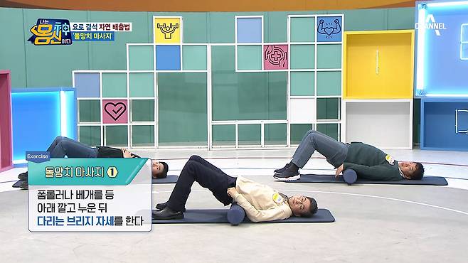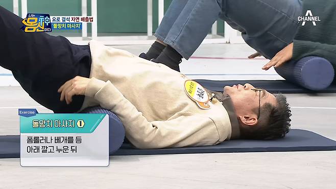 1. 폼롤러나 베개를 등 아래 깔고 누운 뒤
