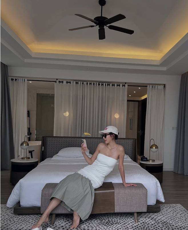 정아는 햇살 아래 웃음을 터뜨리며 여유롭게 휴식을 즐기는 모습으로 보는 이들까지 힐링하게 만들었습니다.