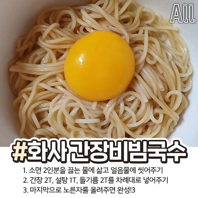 TIP: 계란 노른자가 국수에 잘 스며들도록 비비면 고소한 맛이 살아나요!