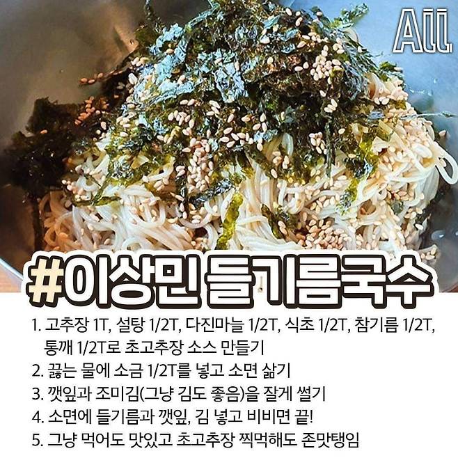 재료: 소면, 오이, 식초, 간장, 설탕, 얼음, 김가루간단한 방법: